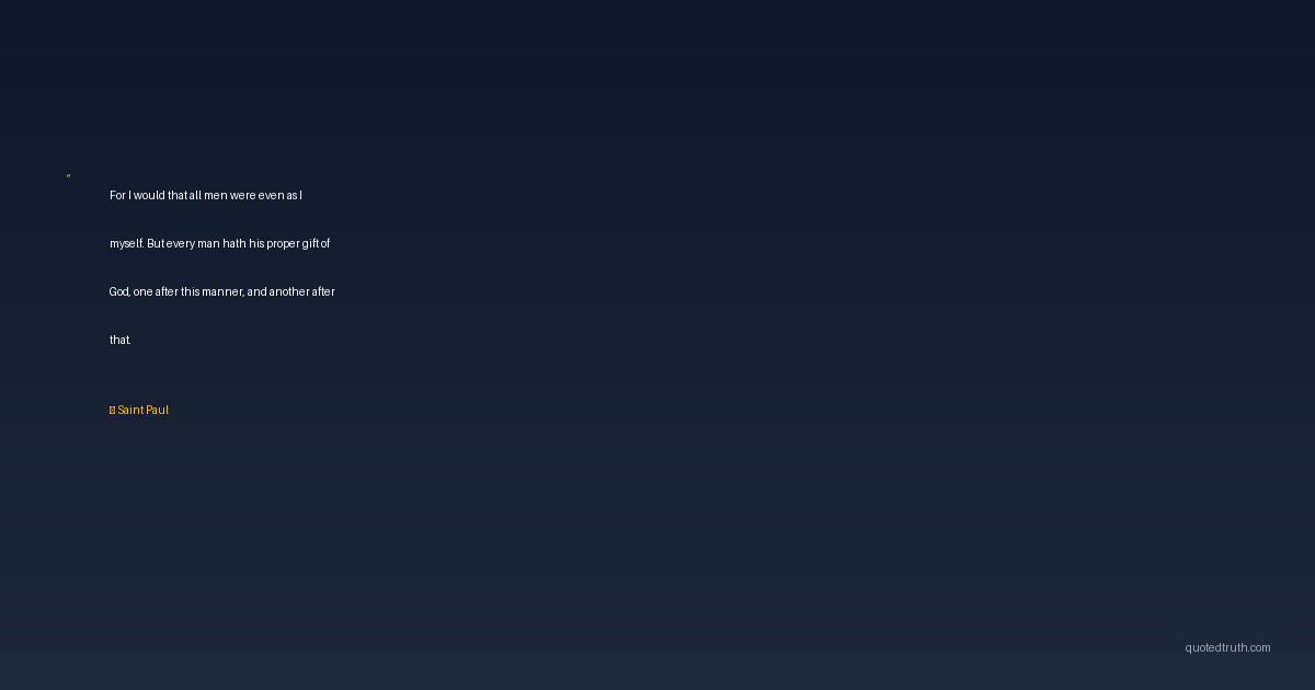 For I would that all men were even as I myself. But every man hath his proper gift of God, one after this manner, and another after that.