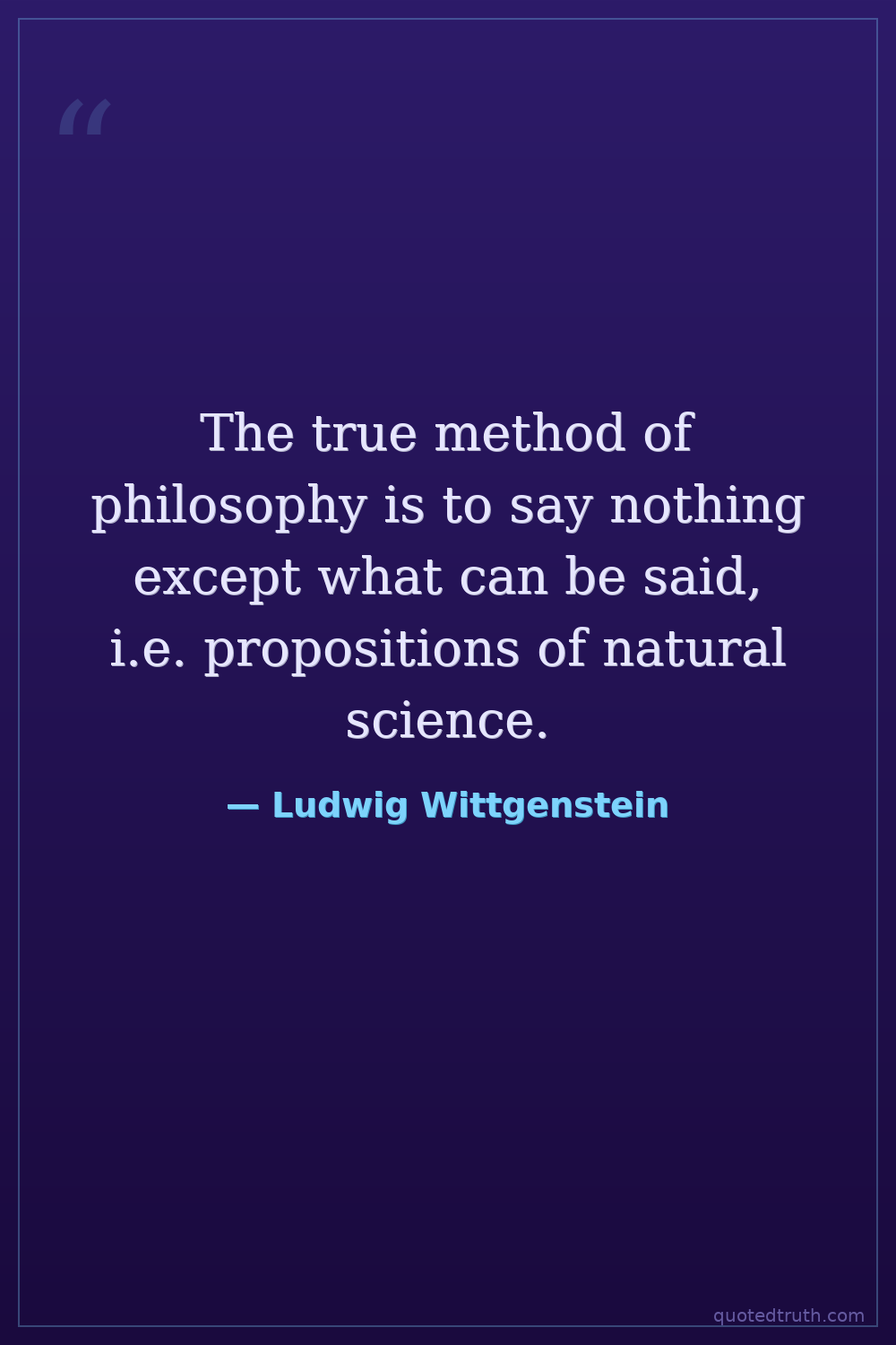 The true method of philosophy is to say nothing except what can be said, i.e. propositions of natural science.