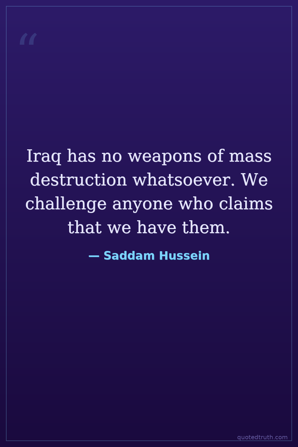 Iraq has no weapons of mass destruction whatsoever. We challenge anyone who claims that we have them.