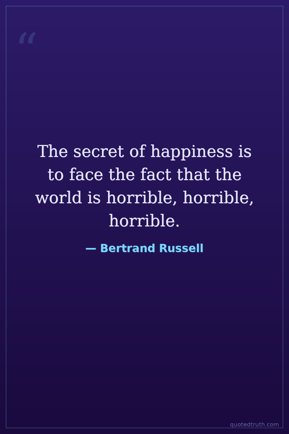 The secret of happiness is to face the fact that the world is horrible, horrible, horrible.