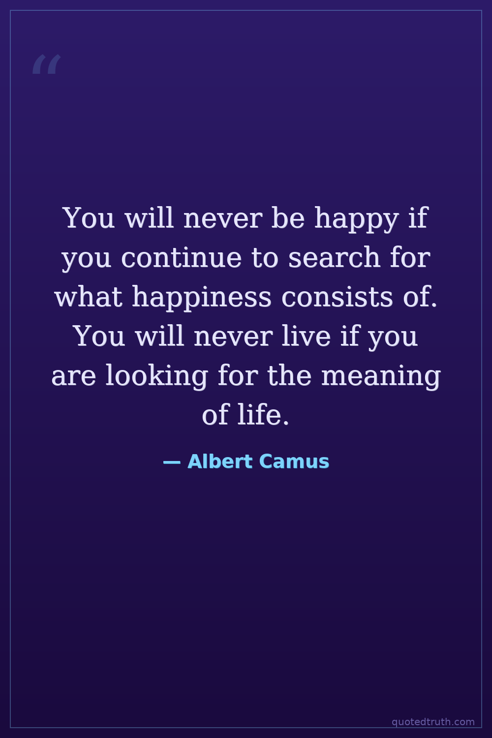 You will never be happy if you continue to search for what happiness consists of. You will never live if you are looking for the meaning of life.