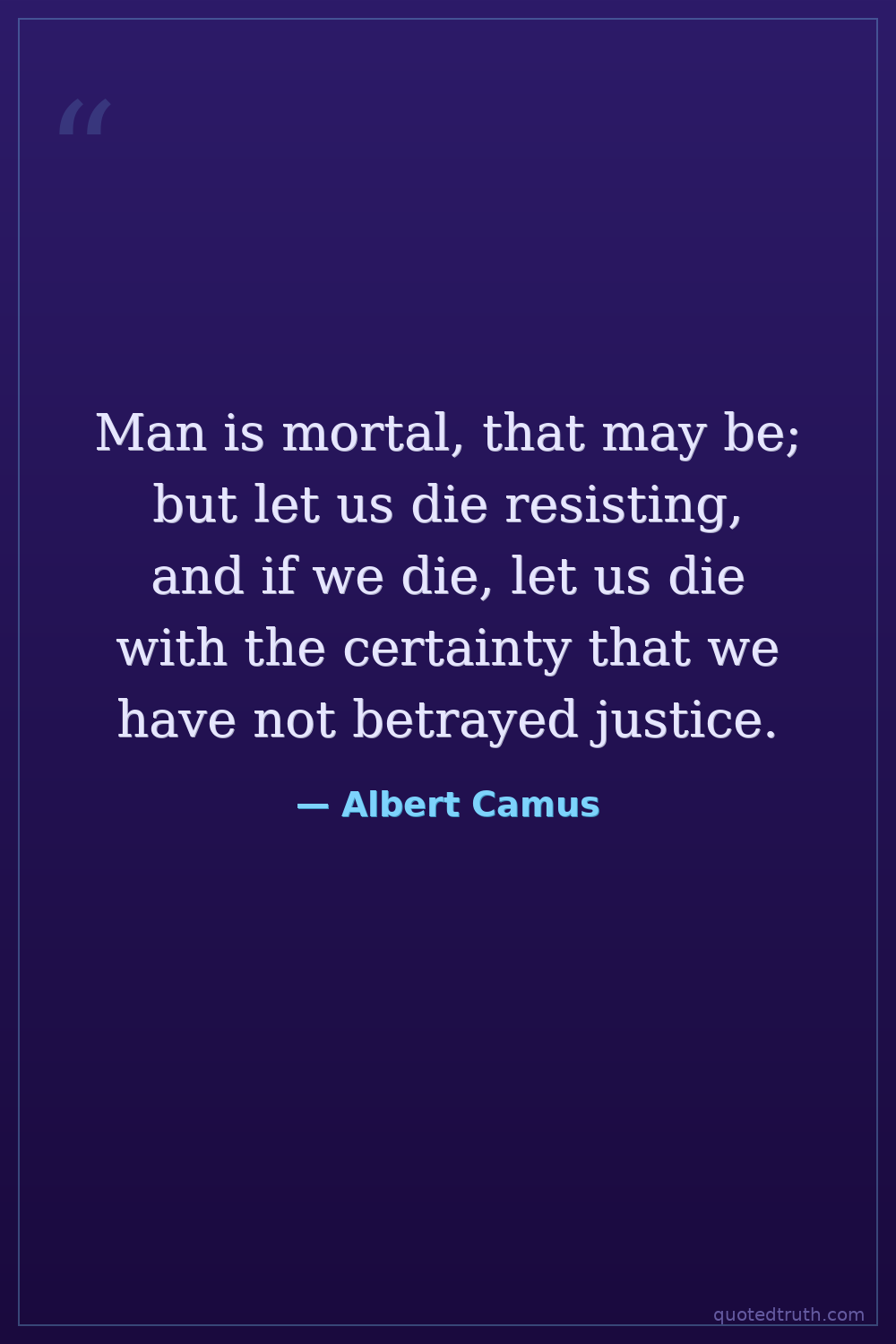 Man is mortal, that may be; but let us die resisting, and if we die, let us die with the certainty that we have not betrayed justice.