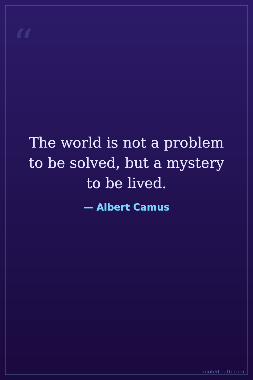 The world is not a problem to be solved, but a mystery to be lived.