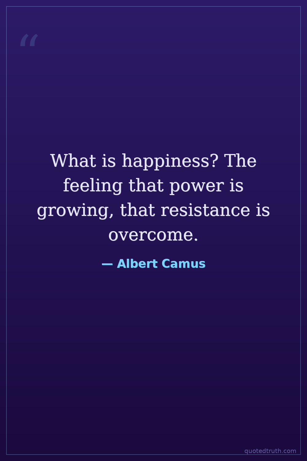 What is happiness? The feeling that power is growing, that resistance is overcome.
