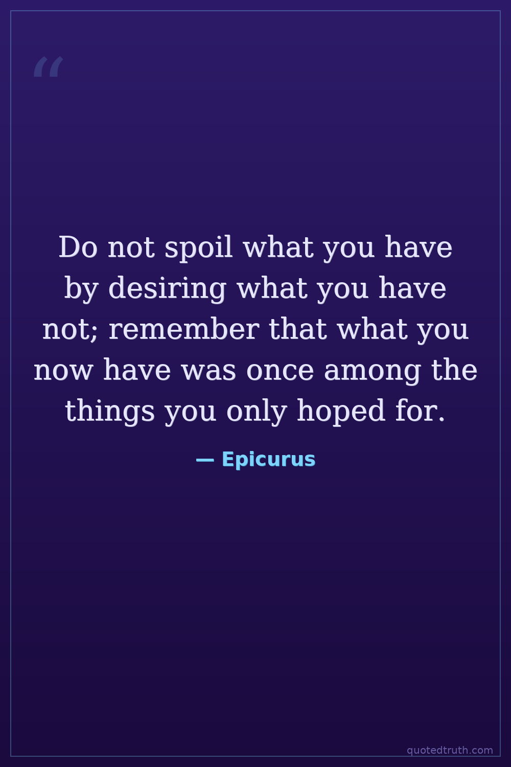Do not spoil what you have by desiring what you have not; remember that what you now have was once among the things you only hoped for.