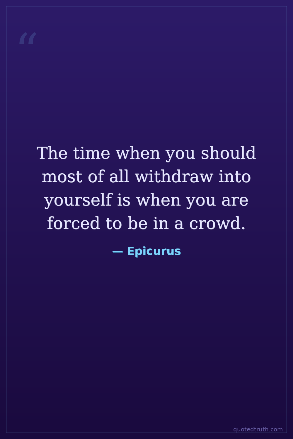 The time when you should most of all withdraw into yourself is when you are forced to be in a crowd.