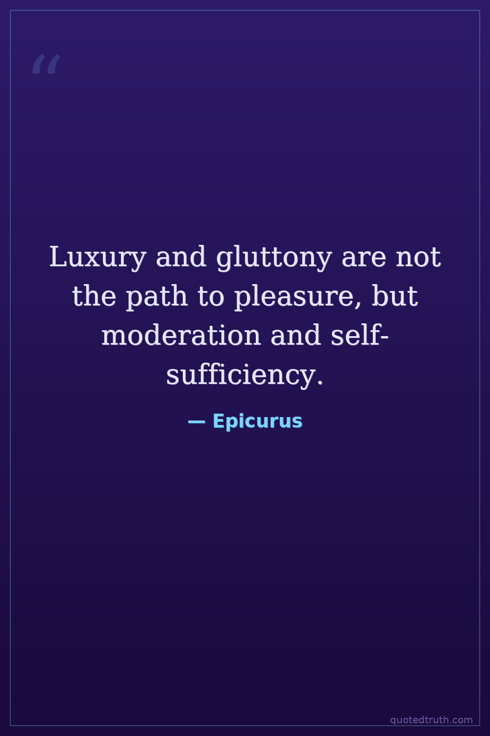 Luxury and gluttony are not the path to pleasure, but moderation and self-sufficiency.