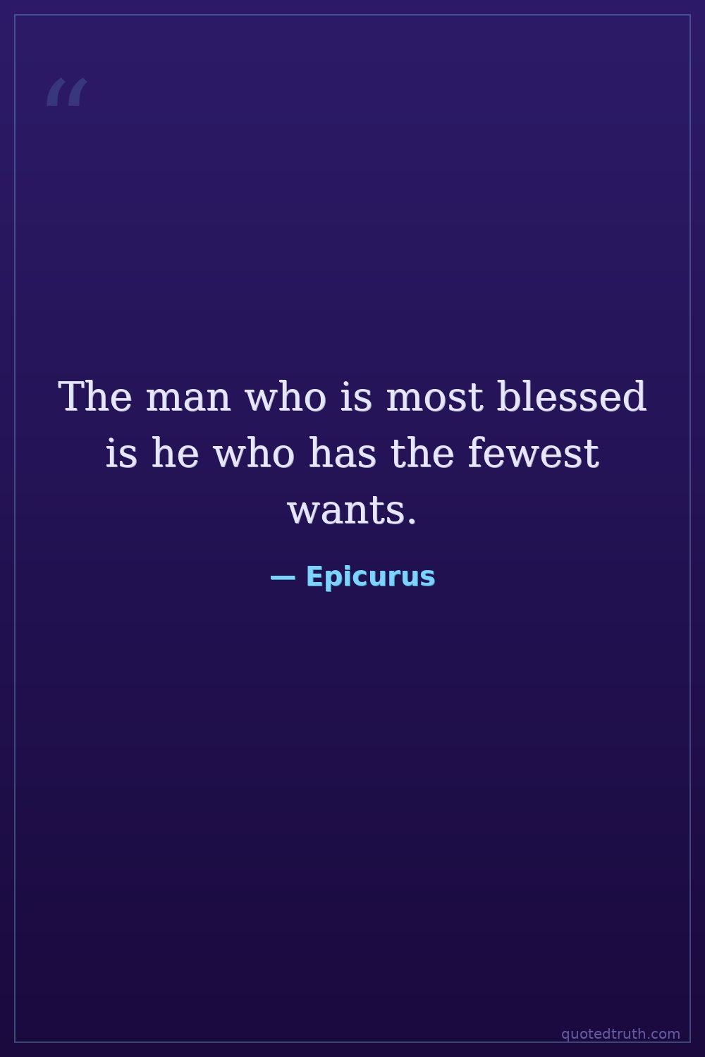 The man who is most blessed is he who has the fewest wants.