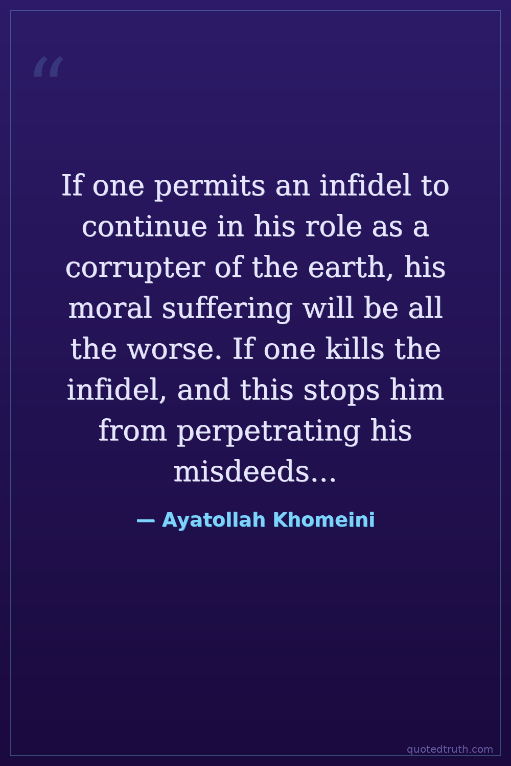 If one permits an infidel to continue in his role as a corrupter of the earth, his moral suffering will be all the worse. If one kills the infidel, and this stops him from perpetrating his misdeeds, his death will be a blessing to him.
