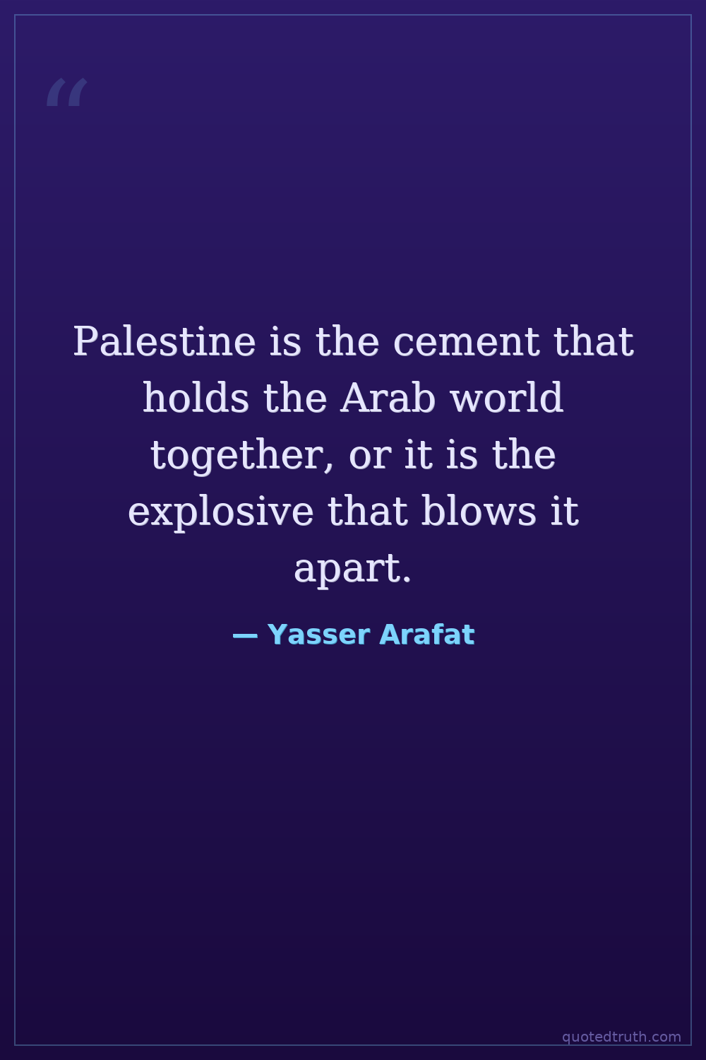 Palestine is the cement that holds the Arab world together, or it is the explosive that blows it apart.