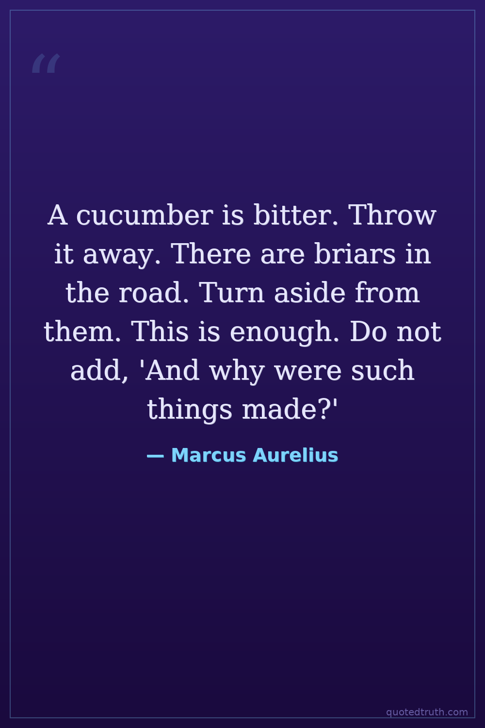 A cucumber is bitter. Throw it away. There are briars in the road. Turn aside from them. This is enough. Do not add, 'And why were such things made?'