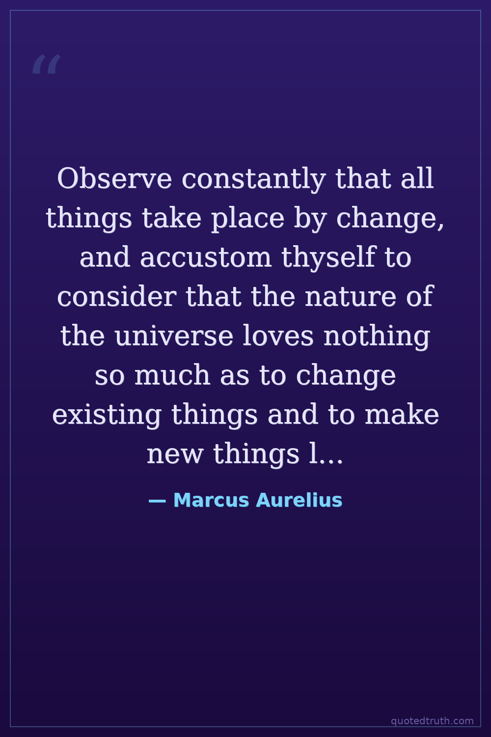 Observe constantly that all things take place by change, and accustom thyself to consider that the nature of the universe loves nothing so much as to change existing things and to make new things like them.