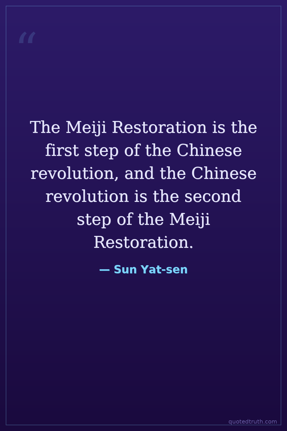The Meiji Restoration is the first step of the Chinese revolution, and the Chinese revolution is the second step of the Meiji Restoration.
