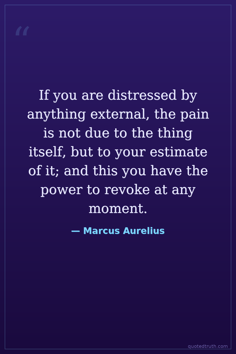 If you are distressed by anything external, the pain is not due to the thing itself, but to your estimate of it; and this you have the power to revoke at any moment.