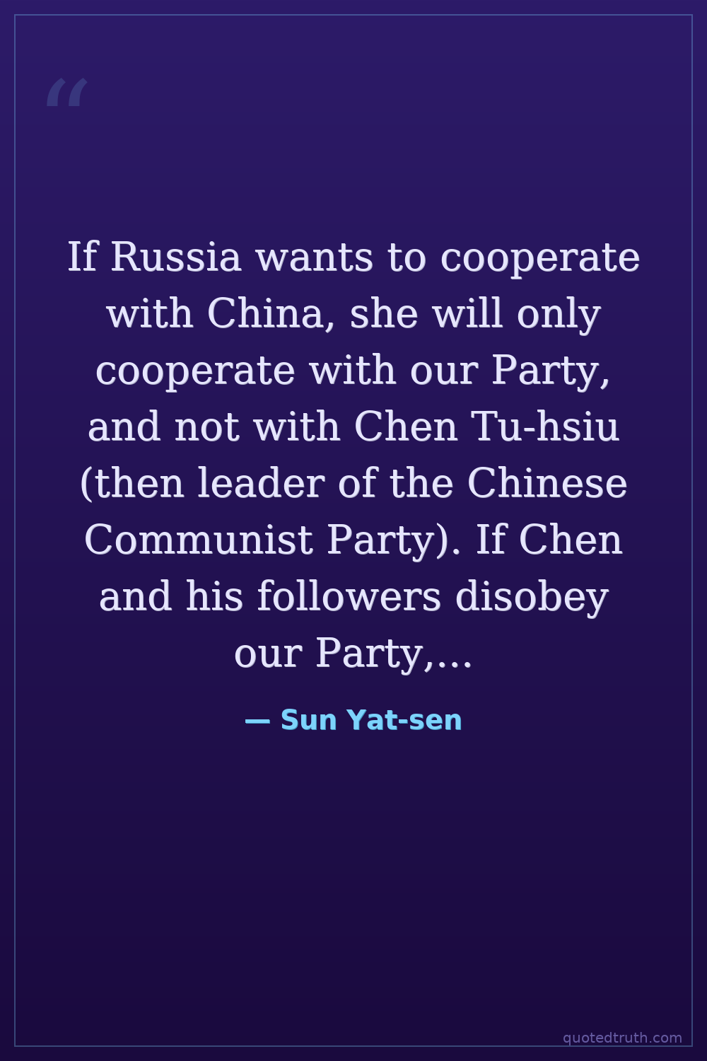If Russia wants to cooperate with China, she will only cooperate with our Party, and not with Chen Tu-hsiu (then leader of the Chinese Communist Party). If Chen and his followers disobey our Party, we must expel them.