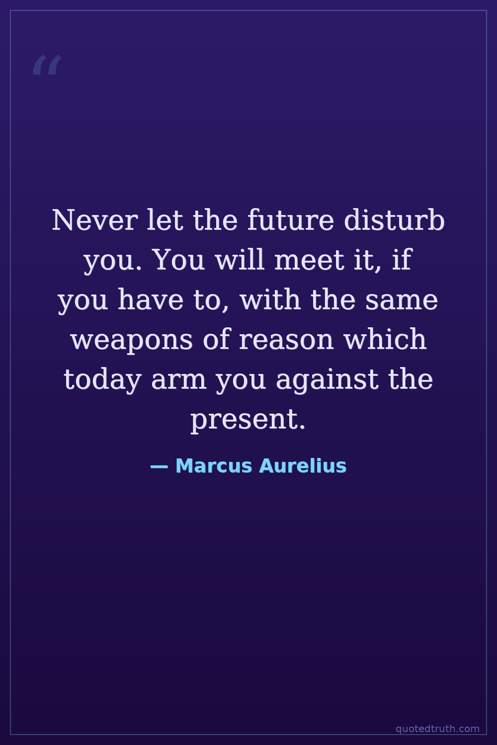 Never let the future disturb you. You will meet it, if you have to, with the same weapons of reason which today arm you against the present.