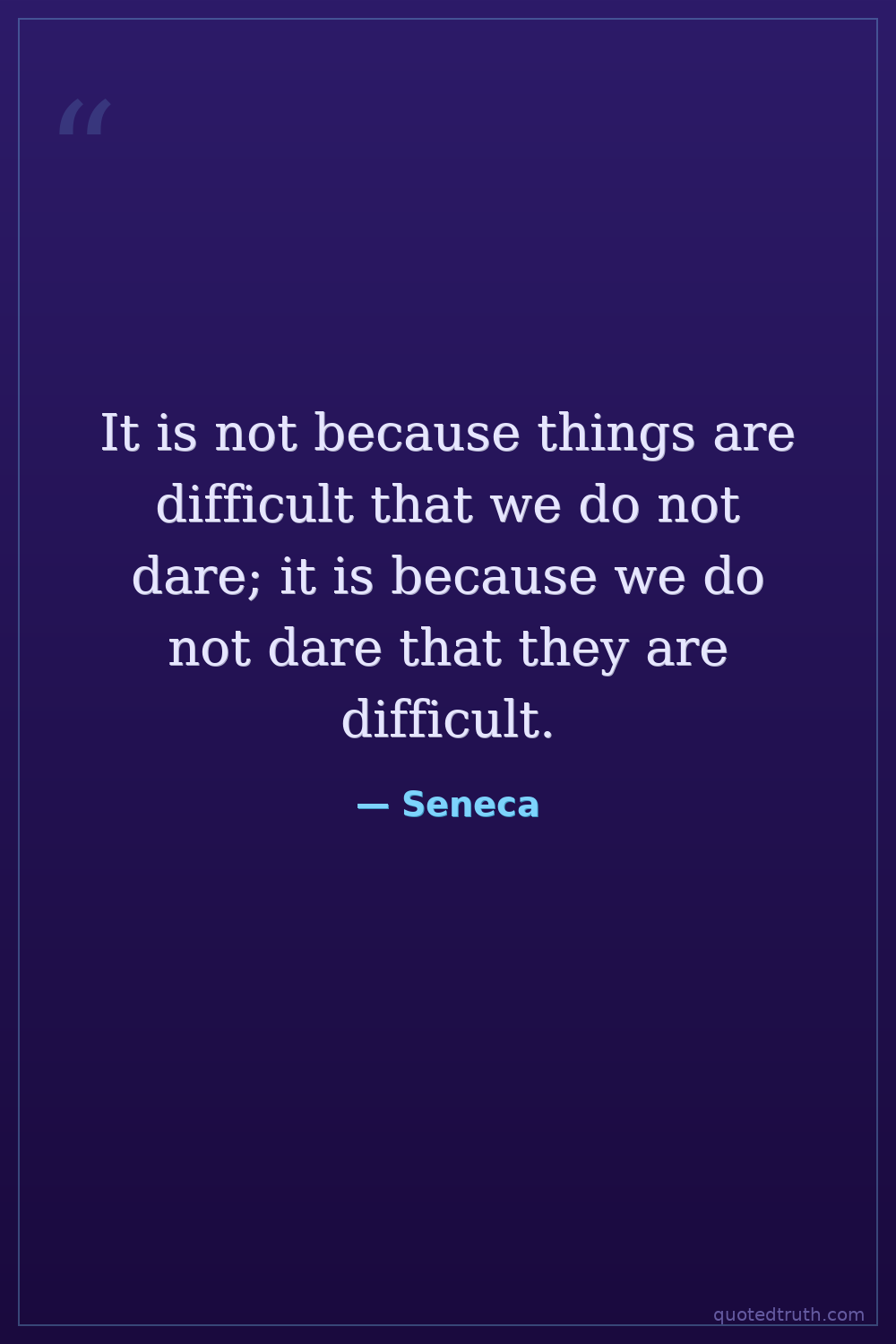 It is not because things are difficult that we do not dare; it is because we do not dare that they are difficult.