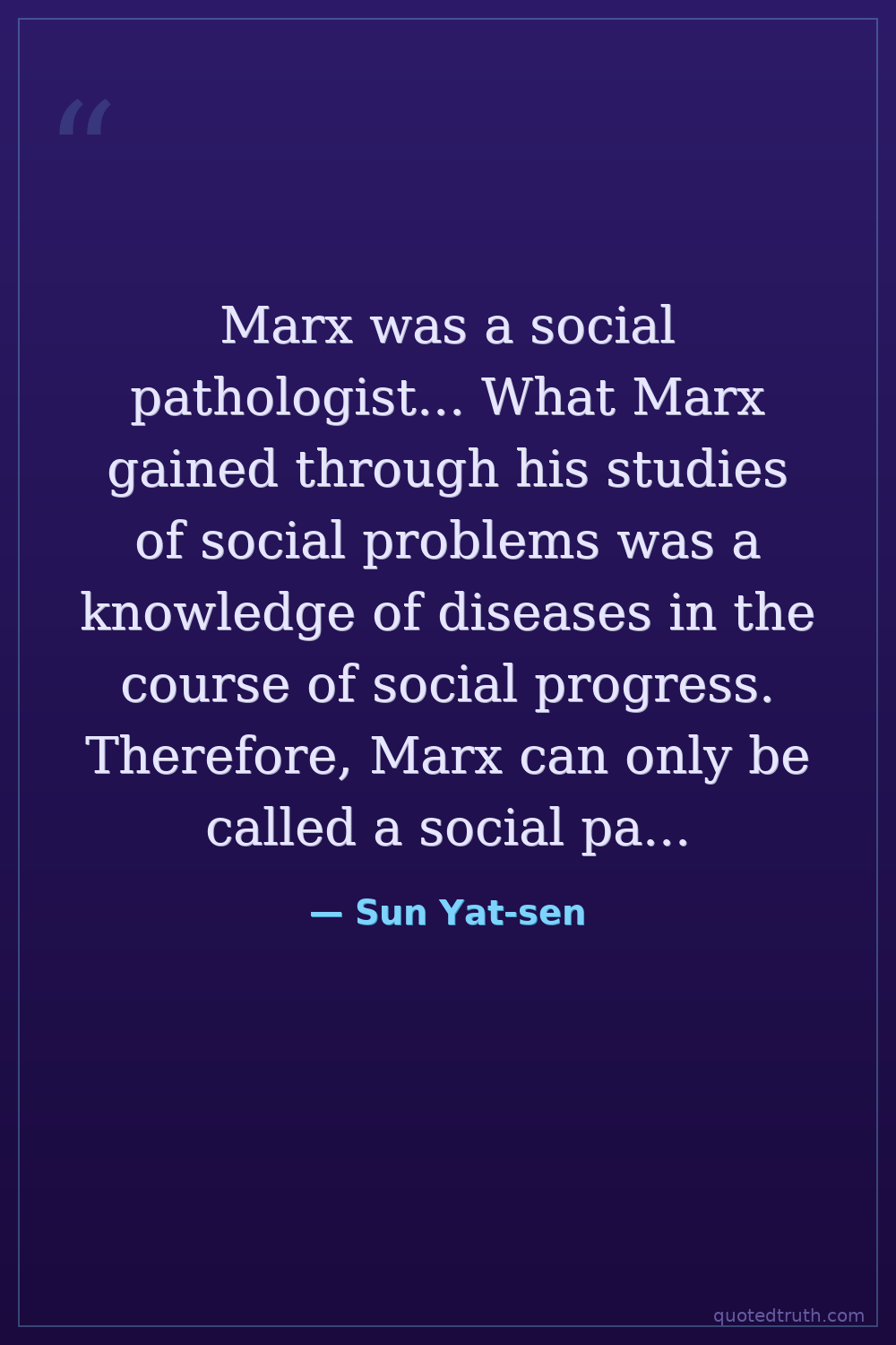 Marx was a social pathologist... What Marx gained through his studies of social problems was a knowledge of diseases in the course of social progress. Therefore, Marx can only be called a social pathologist; we cannot say that he is a social physiologist.