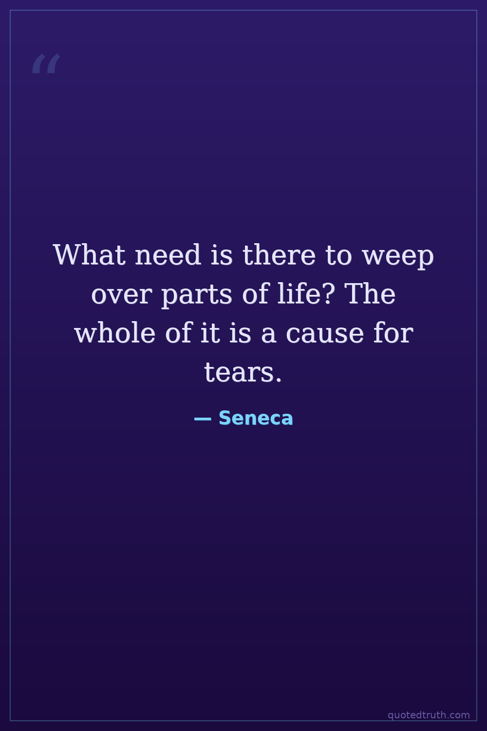 What need is there to weep over parts of life? The whole of it is a cause for tears.