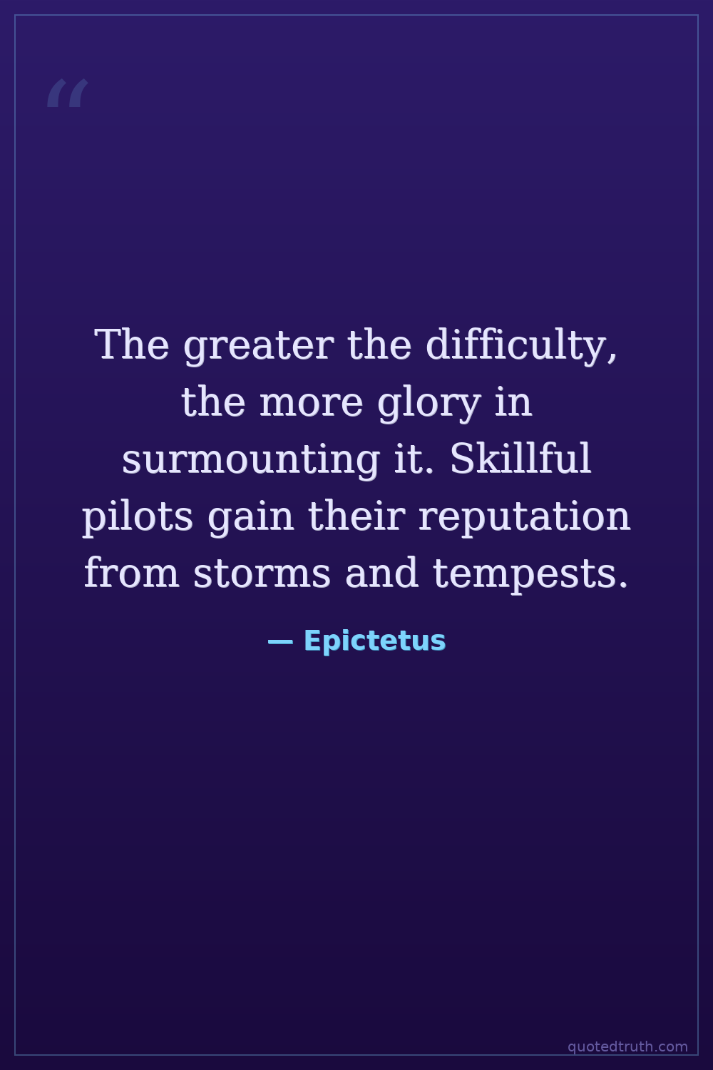 The greater the difficulty, the more glory in surmounting it. Skillful pilots gain their reputation from storms and tempests.