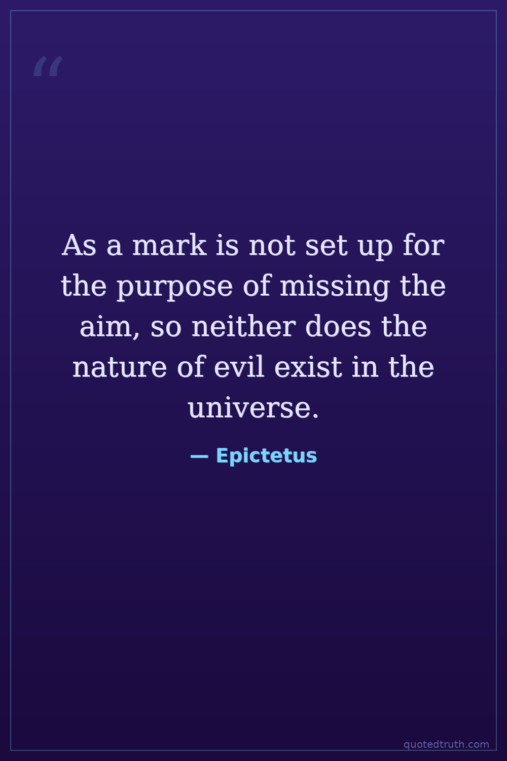 As a mark is not set up for the purpose of missing the aim, so neither does the nature of evil exist in the universe.