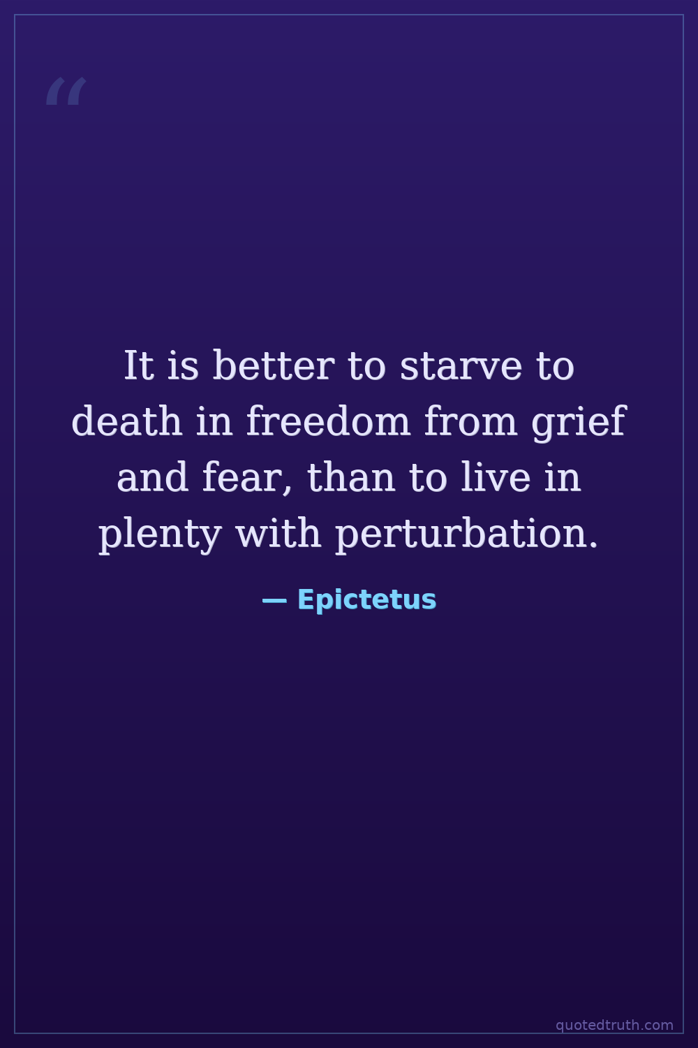 It is better to starve to death in freedom from grief and fear, than to live in plenty with perturbation.