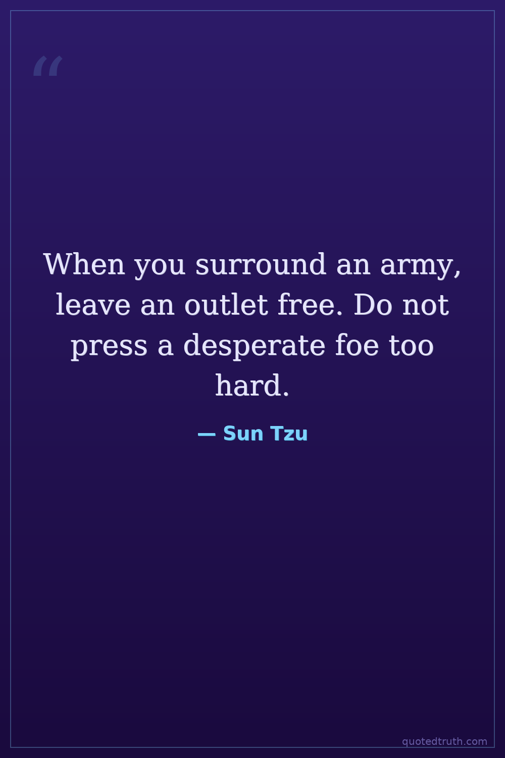 When you surround an army, leave an outlet free. Do not press a desperate foe too hard.