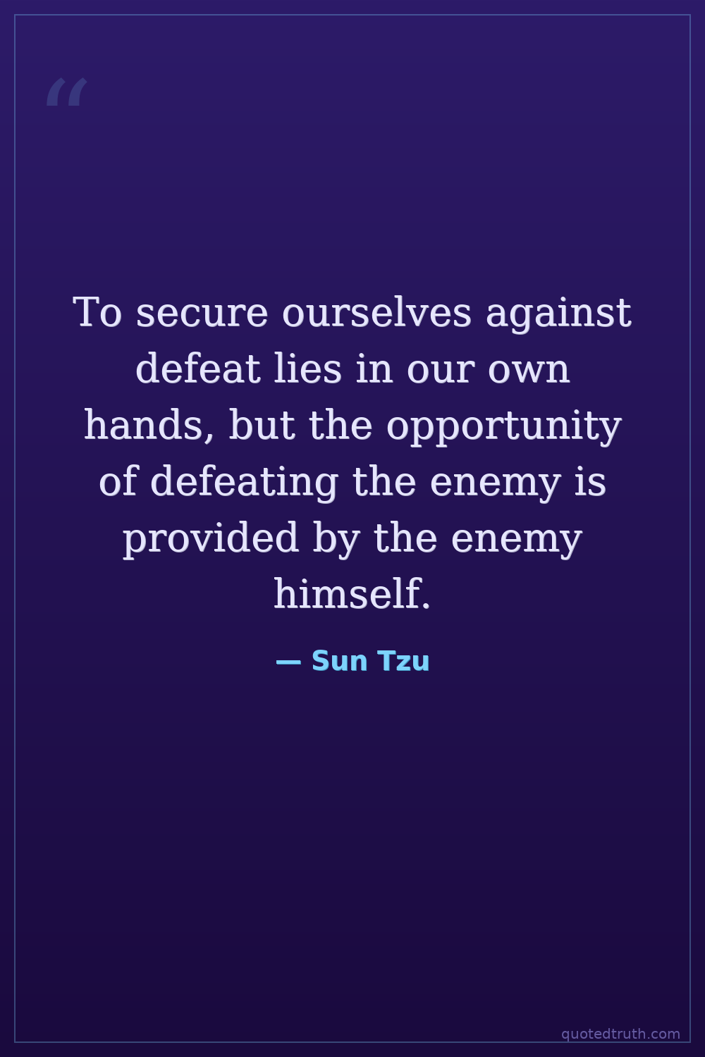 To secure ourselves against defeat lies in our own hands, but the opportunity of defeating the enemy is provided by the enemy himself.
