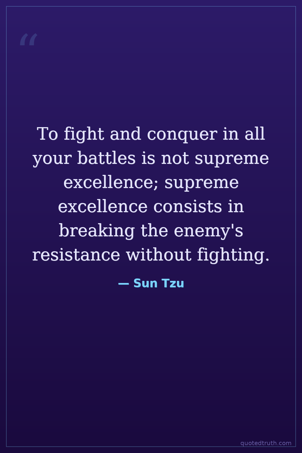 To fight and conquer in all your battles is not supreme excellence; supreme excellence consists in breaking the enemy's resistance without fighting.