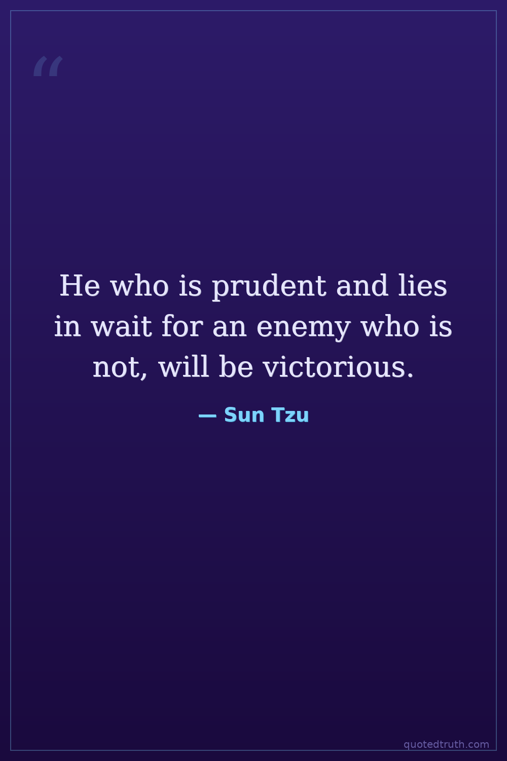 He who is prudent and lies in wait for an enemy who is not, will be victorious.
