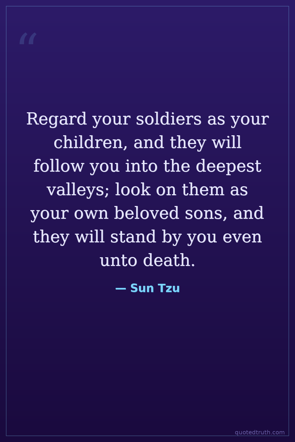 Regard your soldiers as your children, and they will follow you into the deepest valleys; look on them as your own beloved sons, and they will stand by you even unto death.