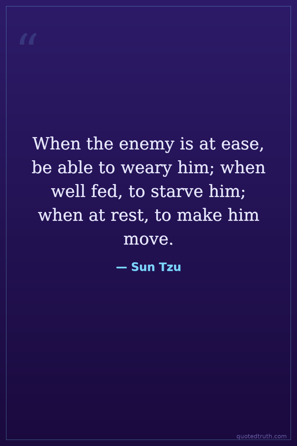 When the enemy is at ease, be able to weary him; when well fed, to starve him; when at rest, to make him move.
