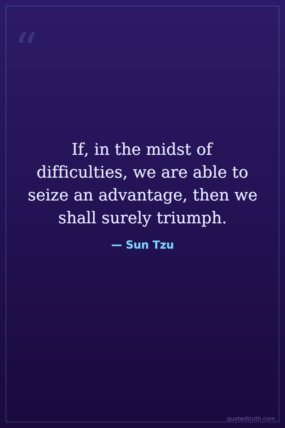 If, in the midst of difficulties, we are able to seize an advantage, then we shall surely triumph.