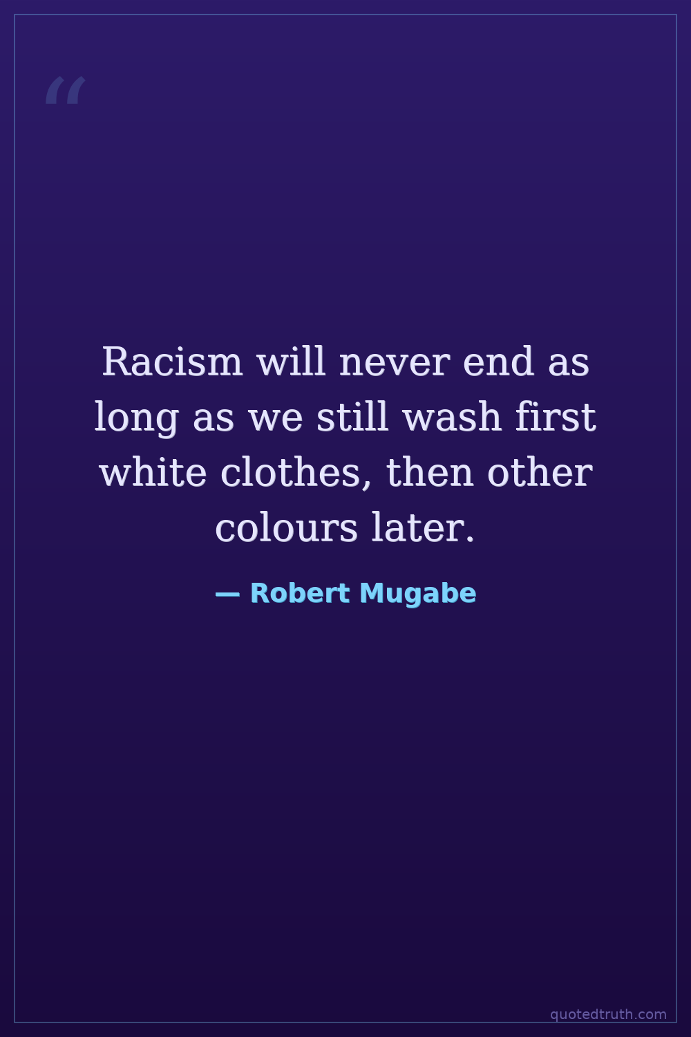 Racism will never end as long as we still wash first white clothes, then other colours later.