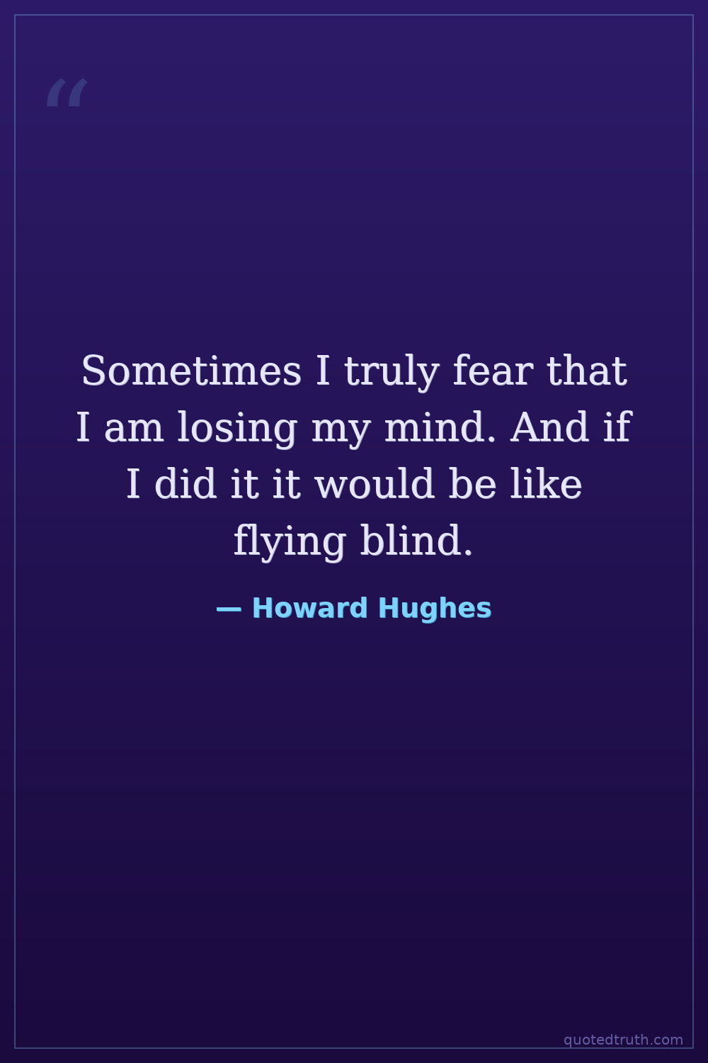 Sometimes I truly fear that I am losing my mind. And if I did it it would be like flying blind.