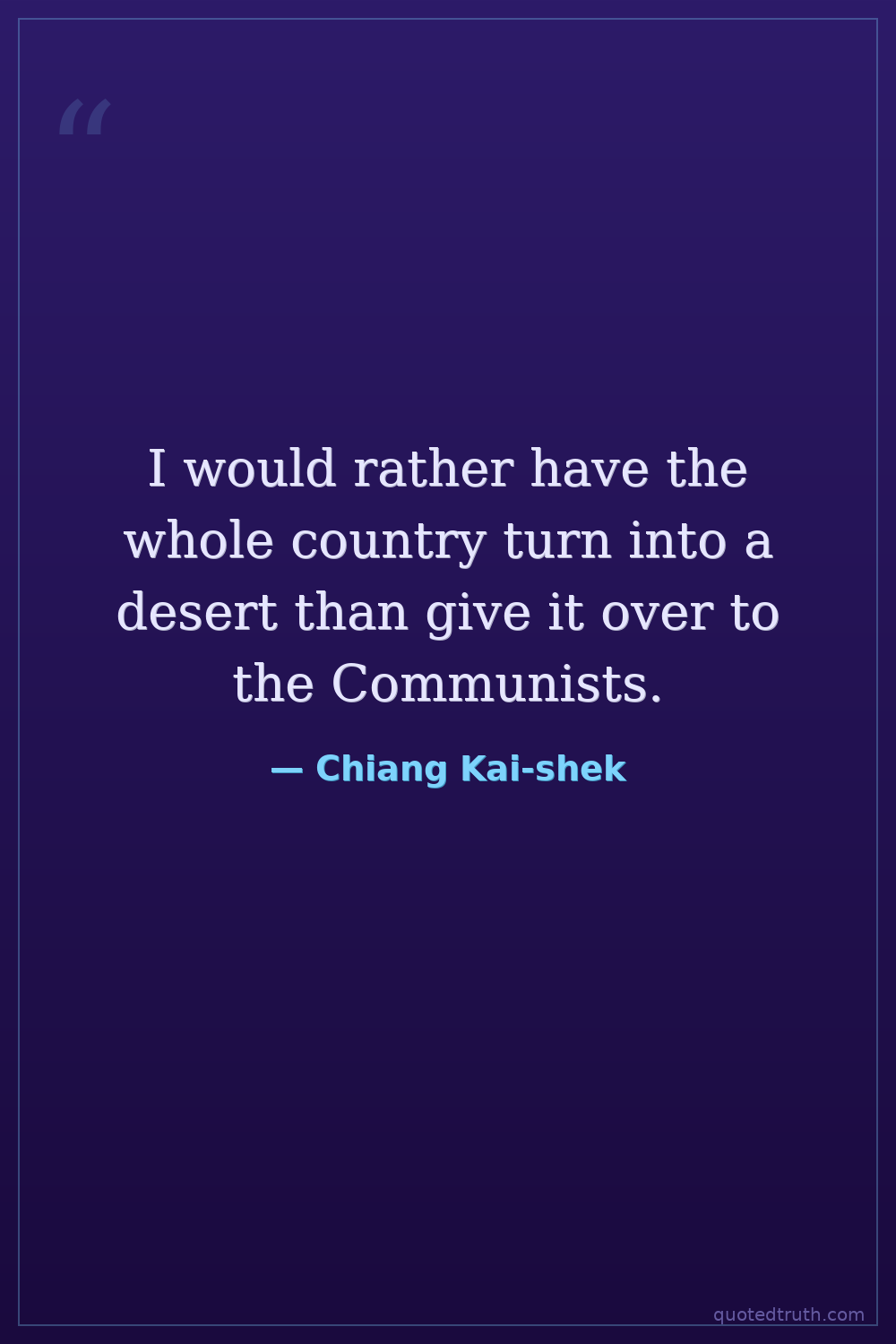 I would rather have the whole country turn into a desert than give it over to the Communists.