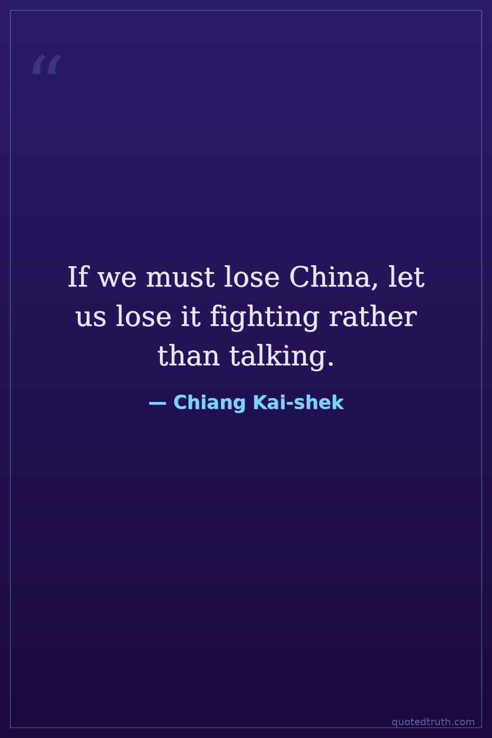 If we must lose China, let us lose it fighting rather than talking.