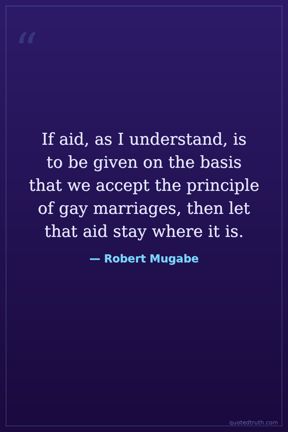 If aid, as I understand, is to be given on the basis that we accept the principle of gay marriages, then let that aid stay where it is.