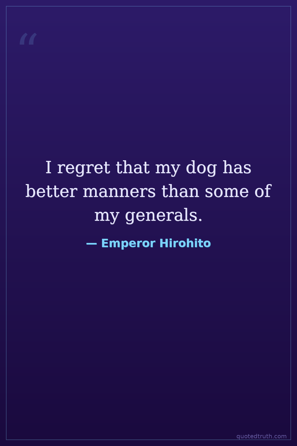 I regret that my dog has better manners than some of my generals.