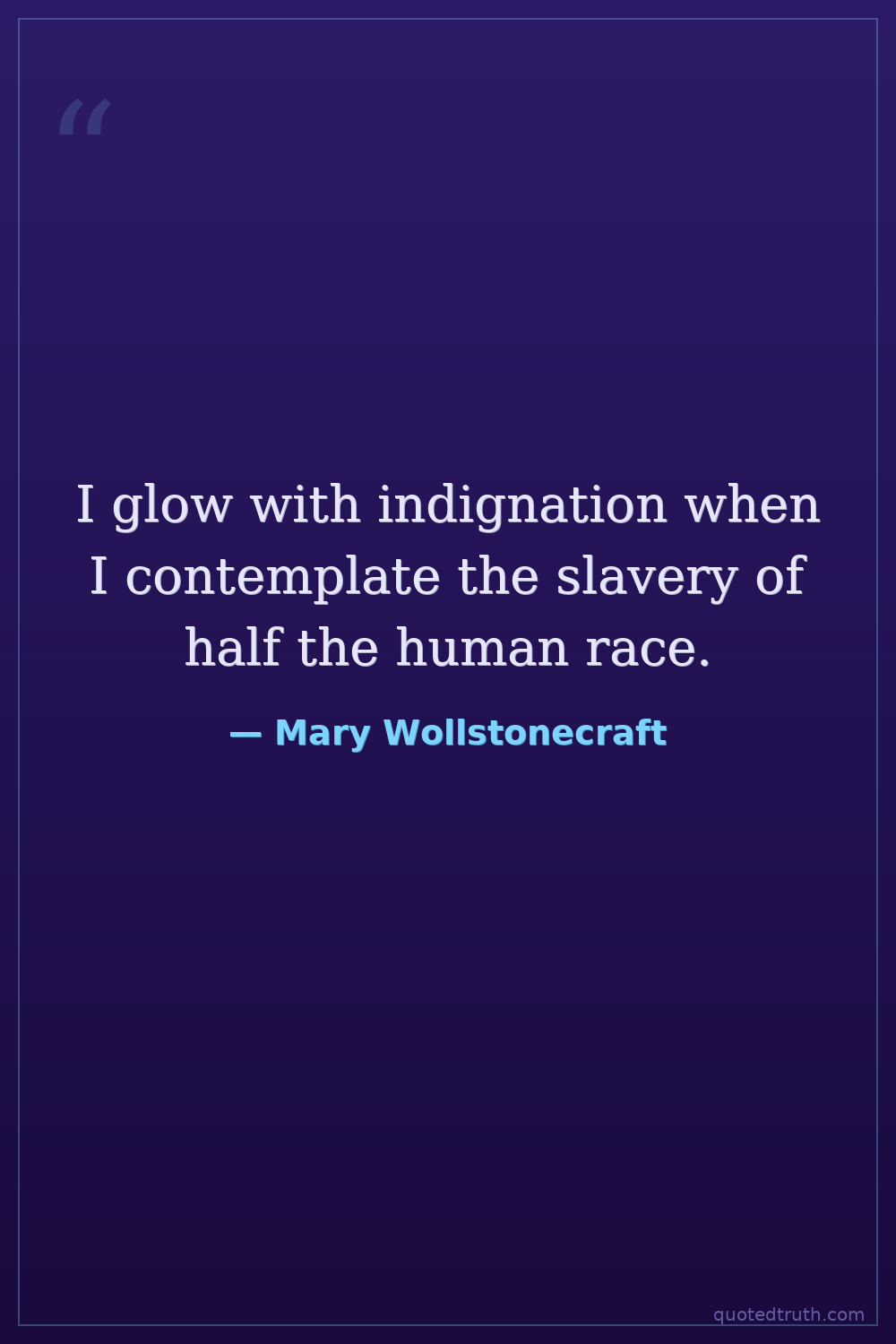 I glow with indignation when I contemplate the slavery of half the human race.