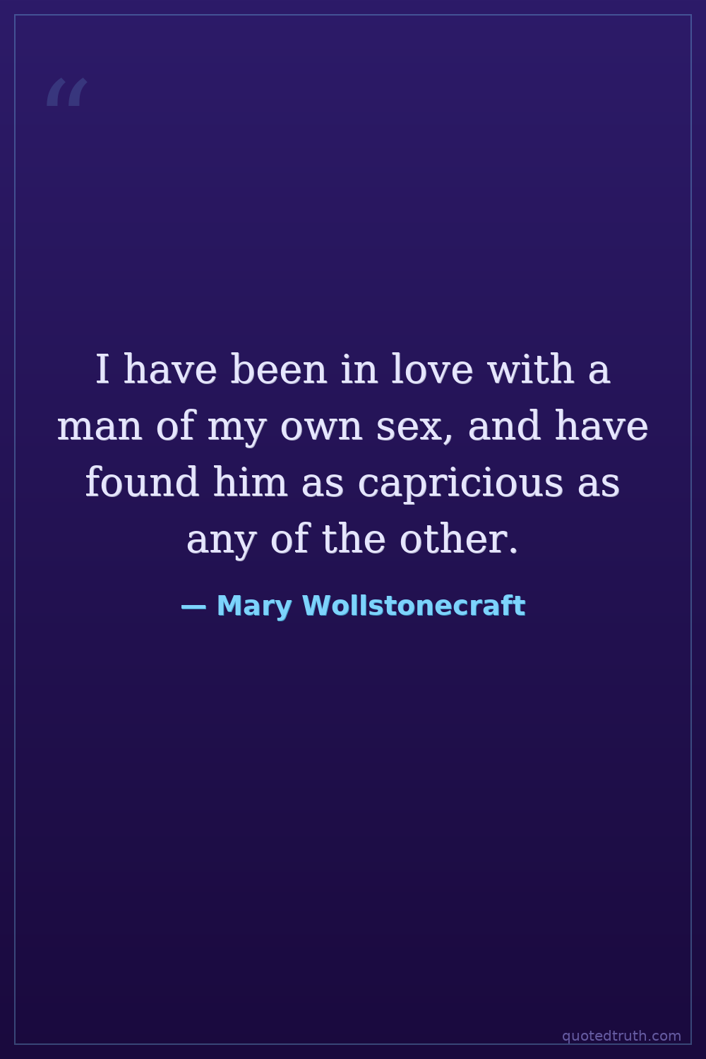 I have been in love with a man of my own sex, and have found him as capricious as any of the other.