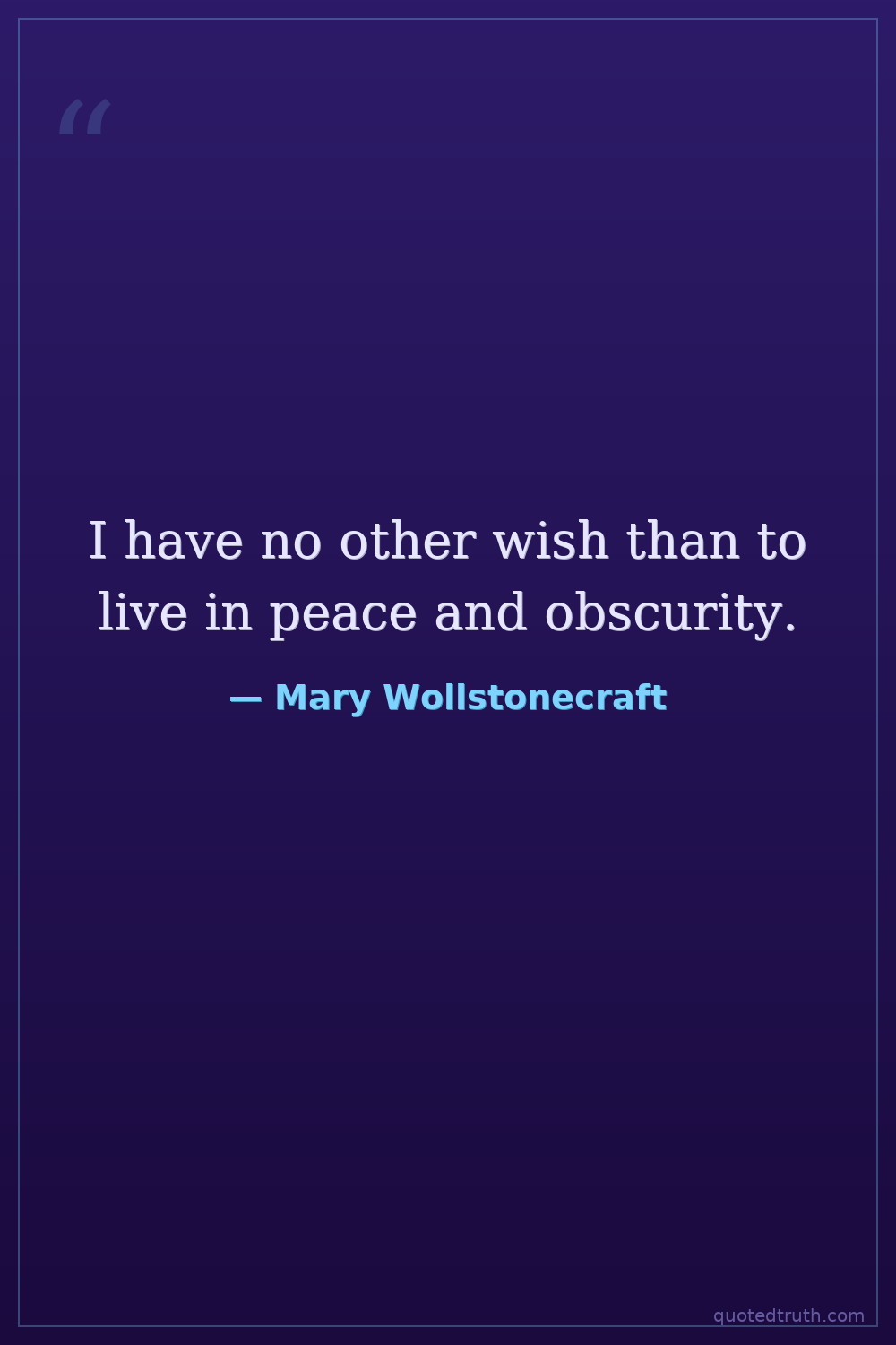 I have no other wish than to live in peace and obscurity.