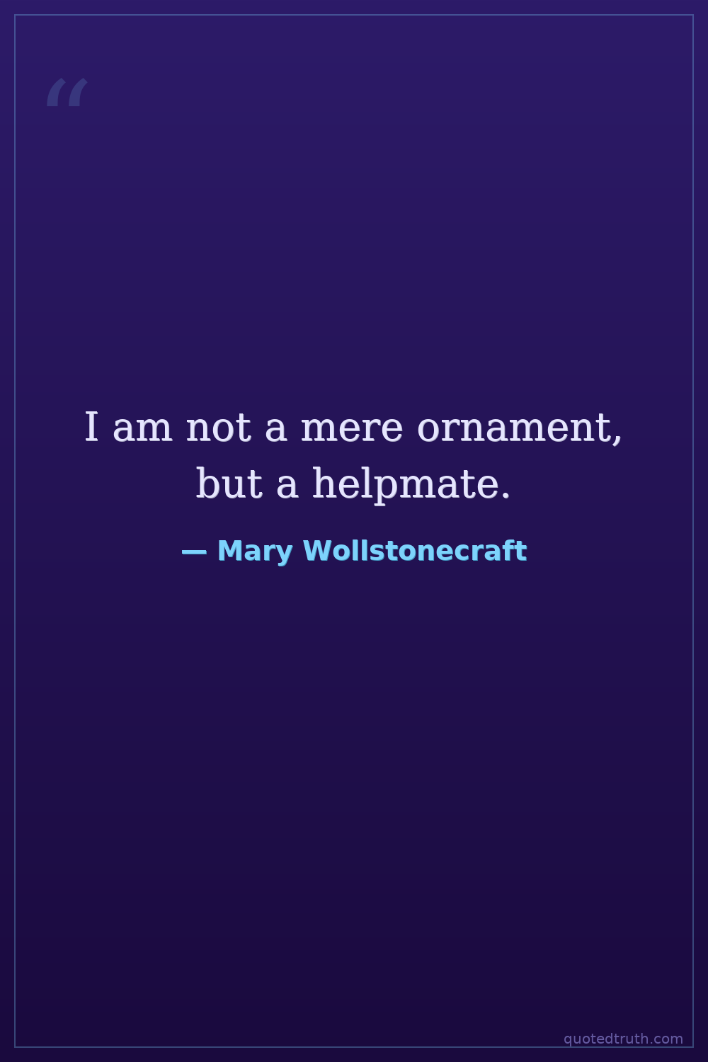 Controversial"It is time to effect a revolution in female manners – time to restore to them their lost dignity – and make them, as a part of the human species, labour by reforming themselves to reform the world."