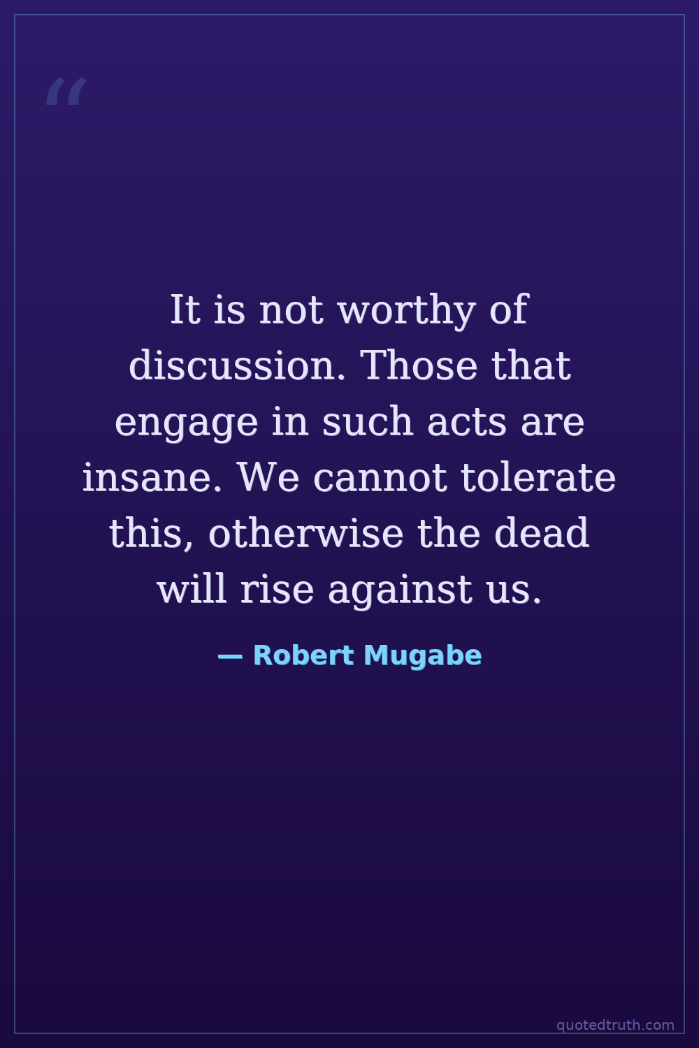 It is not worthy of discussion. Those that engage in such acts are insane. We cannot tolerate this, otherwise the dead will rise against us.