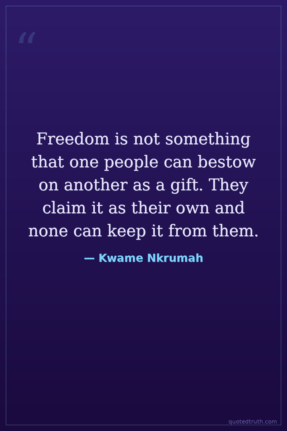 Freedom is not something that one people can bestow on another as a gift. They claim it as their own and none can keep it from them.