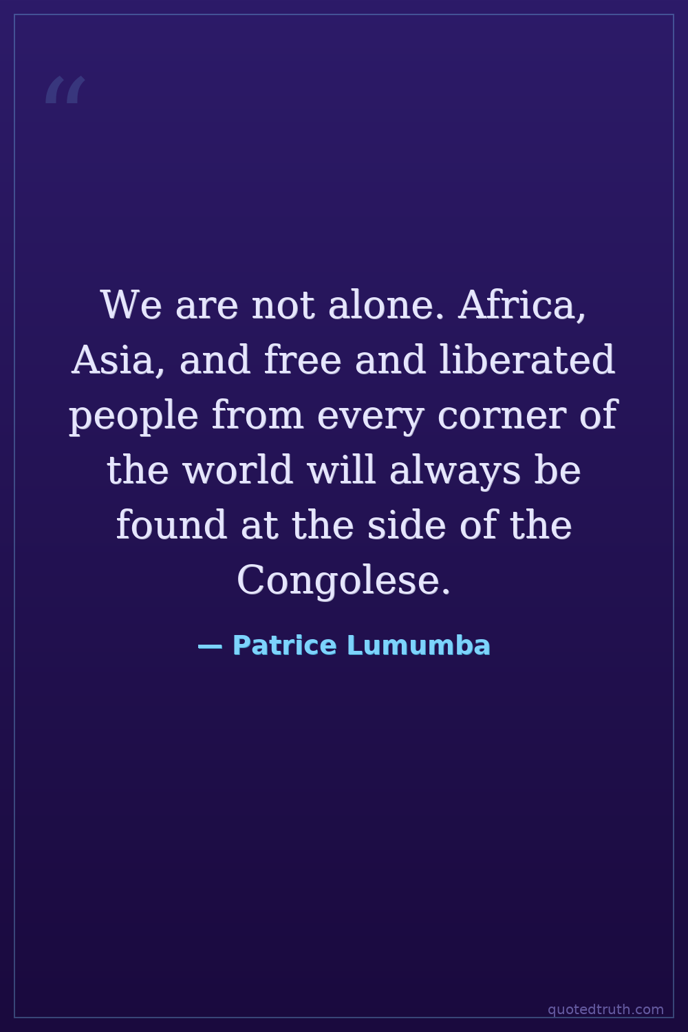 We are not alone. Africa, Asia, and free and liberated people from every corner of the world will always be found at the side of the Congolese.