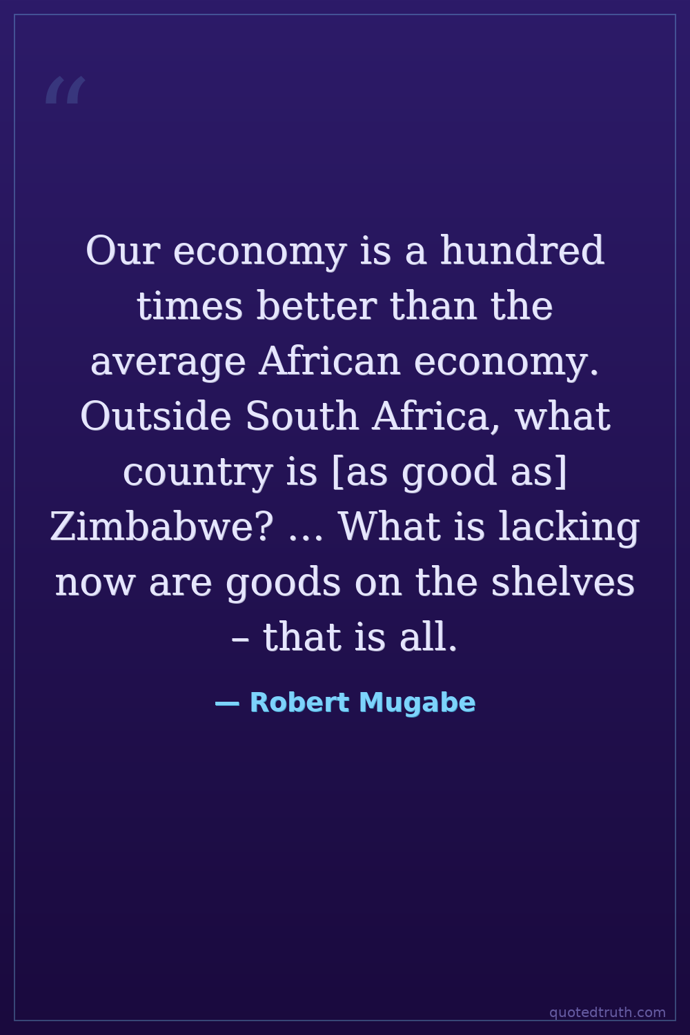 Our economy is a hundred times better than the average African economy. Outside South Africa, what country is [as good as] Zimbabwe? … What is lacking now are goods on the shelves – that is all.