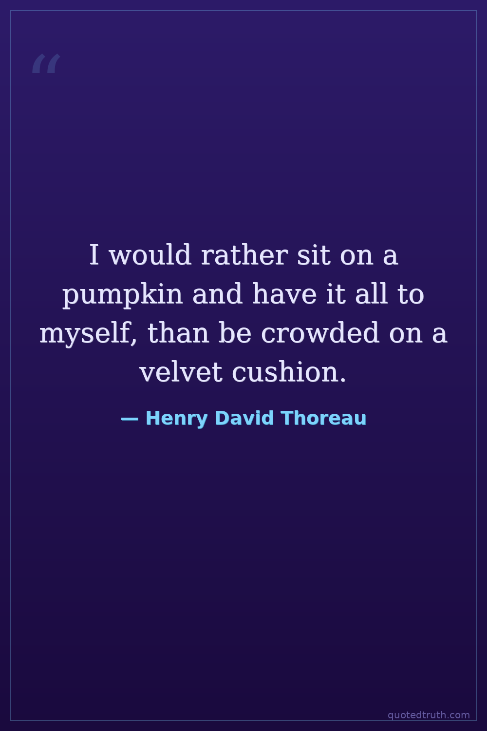 I would rather sit on a pumpkin and have it all to myself, than be crowded on a velvet cushion.