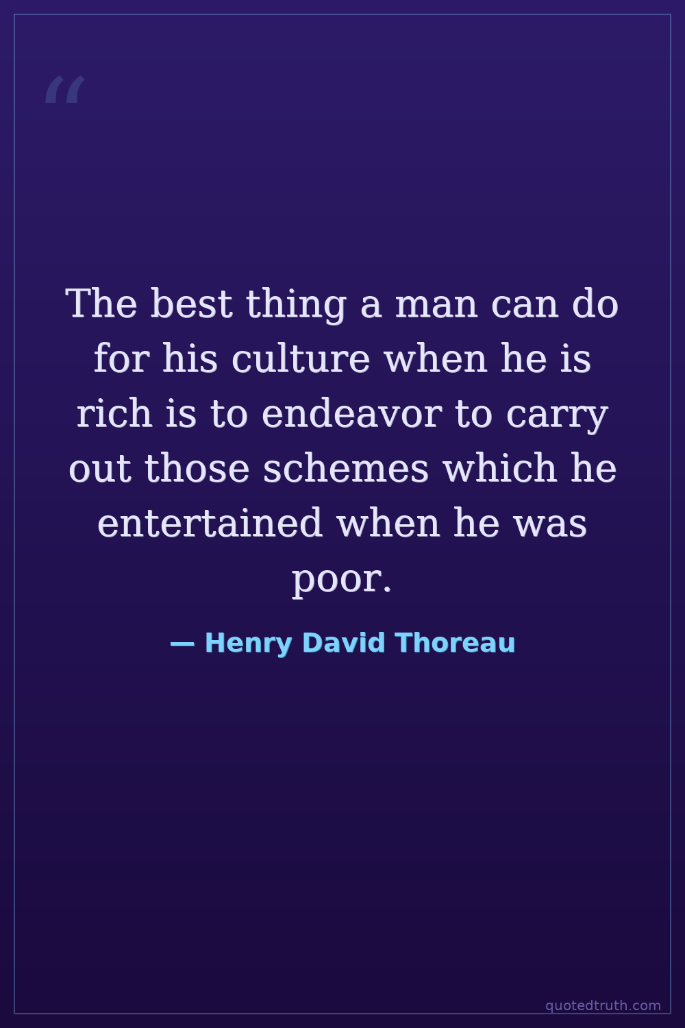 The best thing a man can do for his culture when he is rich is to endeavor to carry out those schemes which he entertained when he was poor.