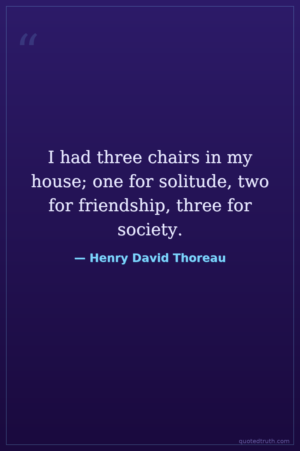 I had three chairs in my house; one for solitude, two for friendship, three for society.